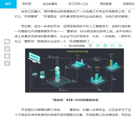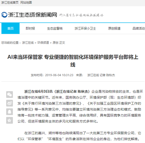 Hundreds of enterprises in Fenghua Economic Development Zone of Ningbo City and Oujiangkou Industrial Park of Wenzhou City have already used "housekeeper", "housekeeper" intelligent environmental protection housekeeper service platform to play an active role.
