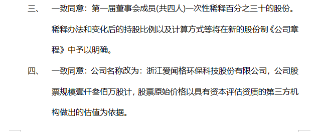 On September 9, 2019, the board of directors of Zhejiang Aiwenge Environmental Protection Technology Co., Ltd. made an important decision on the joint-stock system reform. The purpose of the joint-stock system reform is to give the company more healthy development space, encourage employees with shares, exchange talents, resources and markets with shares, and use advanced modern management system to do so. Improve the efficiency of enterprise operation, but also make institutional arrangements for the planning of enterprise listing.